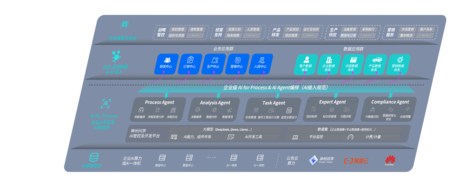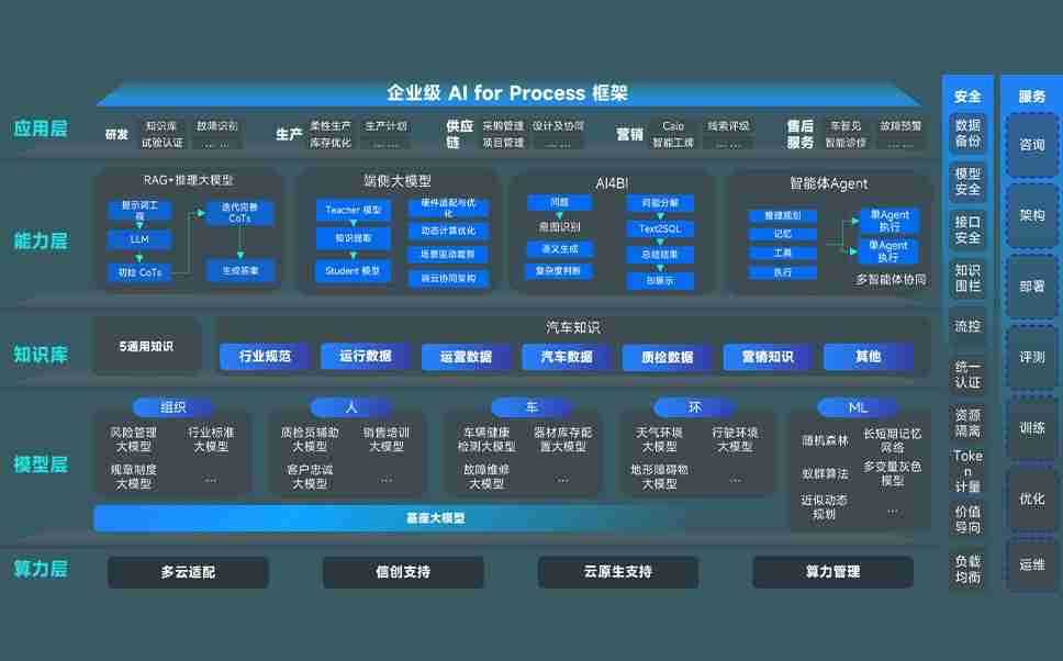 端到端的一站式AI工作空间深度融合了从企业战略规划到日常经营的全流程业务板块,,,定向解决车企内部领域多、、部门多、、链条长、、场景碎片化等难题,,,支持车企快速构建以AI为核心的生产力写作体系,,实现任务执行与AI能力的无缝集成与交互